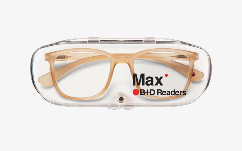 Unisex reading glasses with generous rectangular frames and soft touch finishing ideal for a modern oversize look. Available in six colors.