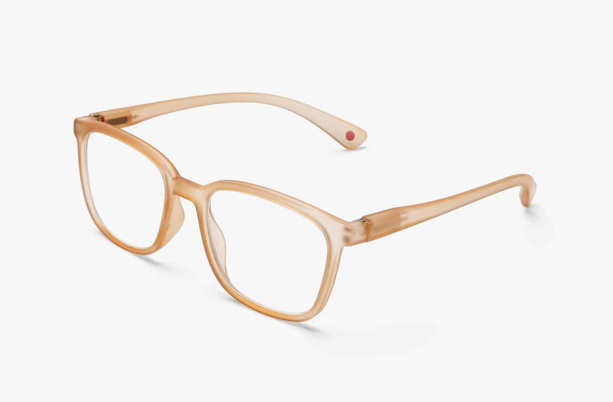 Unisex reading glasses with generous rectangular frames and soft touch finishing ideal for a modern oversize look. Available in six colors.