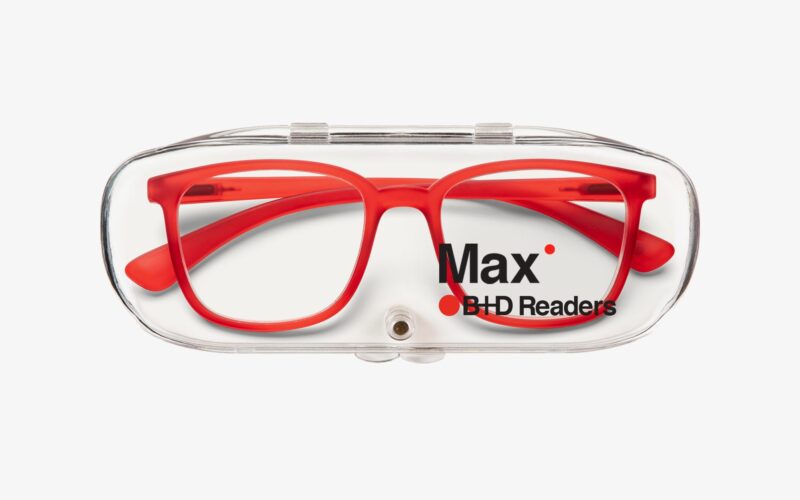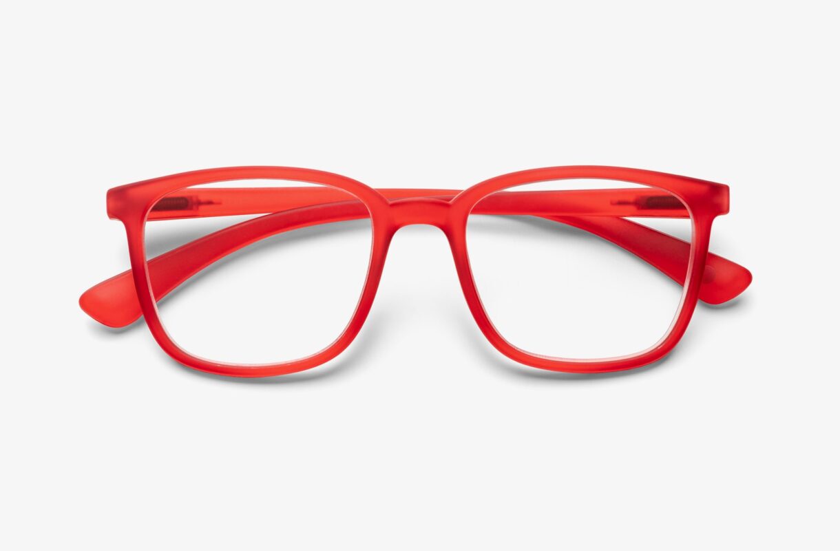Unisex reading glasses with generous rectangular frames and soft touch finishing ideal for a modern oversize look. Available in six colors.